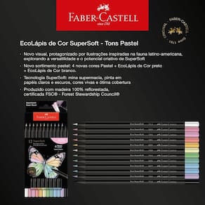 Arte com Consciência e História: Ao escolher o SuperSoft, você leva a qualidade e o design exclusivo da Faber-Castell, uma marca pioneira. Além disso, você faz uma escolha sustentável: todos os Ecolápis são feitos com madeira 100% reflorestada e certificada FSC®. Pinte com orgulho!