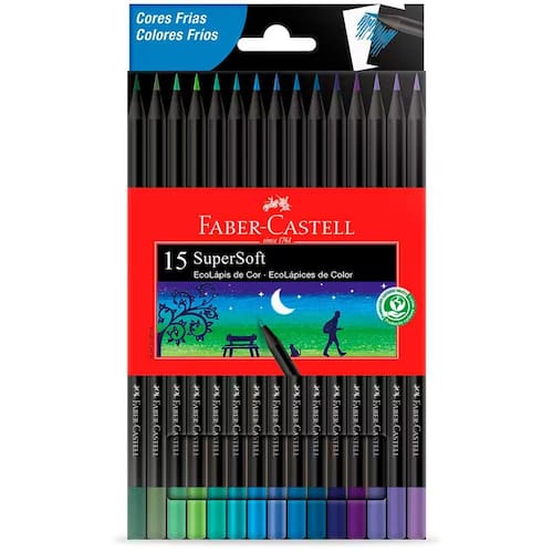 Com o Lápis SuperSoft FaberCastell você terá a melhor qualidade e uma linda aparência em seus trabalhos! Eles possuem cores mais vivas e com ótima cobertura.