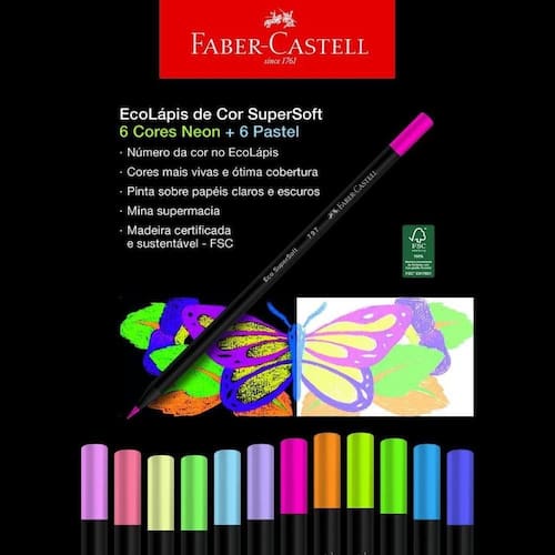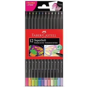 - 1 CAIXA DE LÁPIS DE COR SUPERSOFT COM 12 CORES 6 NEON + 6 PASTÉIS FABER-CASTELL