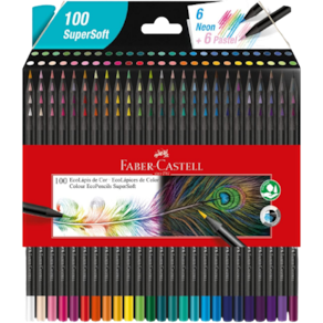 Detalhes do produto EcoLápis de Cor Faber-Castell SuperSoft possui a exclusiva mina supermacia, que garante o máximo de conforto ao pintar Esse kit contém 100 cores mais vivas com excelente cobertura, sobre papéis claros e escuros Além disso, a embalagem é reutilizável e 100% reciclável