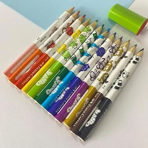 ? 12 cores vibrantes? Formato triangular ergonômico? Tamanho jumbo – mais conforto e controle? Ideal para crianças e uso escolar