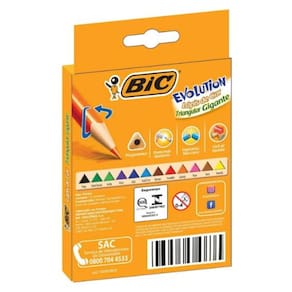 O Lápis de Cor BIC Evolution Triangular Gigante 12 cores foi especialmente desenvolvido para crianças em fase pré-escolar. Possui ponta super resistente. Atóxico: seguro para crianças. Seu corpo triangular gigante é muito mais ergonômico facilitando o manuseio e também não deixa que o lápis role pela mesa. Sua mina é mácia e fácil de apontar. Suas cores são vivas e intensas com ótimo poder de cobertura.