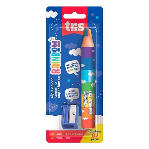 Lápis De Cor Tris 1Cm Jumbo Rainbow Colors + Apontador