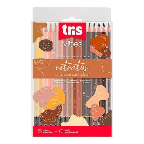 Contém: 15 - lápis de cor vibes retratos + 1 lápis para desenho 6b. 16 total