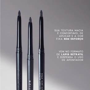 Outro detalhe que merece aplausos é o seu aplicador retrátil, que é prático e higiênico, dispensando o uso de apontadores. O lápis também é ideal para esfumar, contornar e destacar os olhos, podendo ser aplicado inclusive na linha d’água, já que sua fórmula suave não irrita seus olhos, sabia?