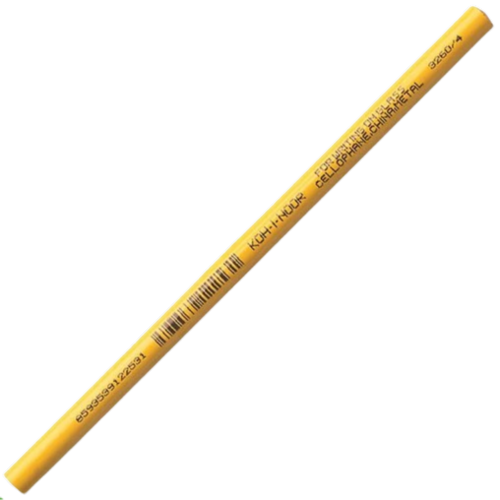 Lápis Dermatográfico amarelo Koh-I-Noor. Lápis dermatográfico importado de excelente qualidade utilizado para uso industrial e profissional. O Lápis dermográfico é utilziado no desenho para riscar diferentes superfícies como, vidro, madeira, porcelana, plástico, metal, papel, papelão, acetato e couro. Cor: Amarelo Marca: Koh-I-Noor Ref: 3263
