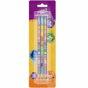 O lápis preto Divertidamente possui corpo redondo, traço HB com estampas divertidas.