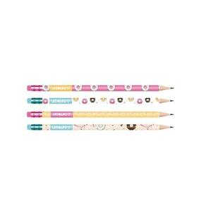 o lápis grafite hb donuts possui grafite com mina de 2,2mm, virola e borracha colorida, 4 estampas temáticas,