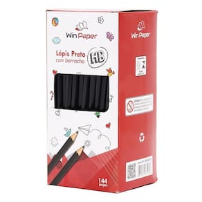 Lápis HB Preto com Borracha 144 Peças Essa linda caixa de lápis pode fazer parte do seu dia a dia escolar ou no escritório, vindo com 144 lápis já aprontados prontos para te ajudar por muito tempo.Excelente produto para escrita e desenho. Características:atóxico linha ecológica Pontas resistentesLápis com formato sextavadoMarca: Win PaperCaixa com 144 unidades Marca: Não Informado