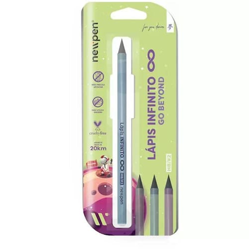 O Lápis Infinito da Newpen equivale a 100 lápis comuns e possui uma tecnologia que consegue comprimir 100 grafites em nano partículas de grafeno, que é um material mais resistente que o grafite natural. O grafeno faz com que ele se desgaste mais lentamente que o grafite comum, o que torna a durabilidade dele igual a 100 lápis comuns.