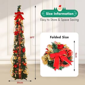 Alupssuc Lápis Pop Up Prelit Árvore de Natal artificial de 1,8 m com controle remoto, decorações vermelhas e douradas pré-decoradas, luzes brancas e multicoloridas, escolha perfeita para decoração de Natal, 1,8 m - ?Pré-decorado?: sem decoração adicional, vem com decoração requintada. Com 36 bolas de Natal, 20 laços, 1 arco grande, 10 flores, 4 tiras e luzes LED. A maioria deles foi decorada com antecedência. Exceto pela bola na embalagem POP, você pode decorá-la de acordo com sua preferência. - ?Luzes LED multicoloridas pré-iluminadas?: O Prelit com 100 luzes LED brancas e multicoloridas entre os galhos cria uma exibição noturna brilhante. Escolha sua cor favorita na varanda ou jardim e até mesmo em ambientes fechados, adicionando uma atmosfera de Natal. - ?Controle remoto, temporizador e função de memória?: Existem 16 cores únicas e 8 modos de iluminação. Você pode alterar os modos de iluminação por controle remoto. Nossa árvore de Natal tem 23 tipos de temporizador e função de memória. Quando você acende as luzes, elas retornarão ao modo em que estavam quando foram desligadas. Não é necessário ajustar a luz novamente. - ?Design conveniente?: usando um design inovador de elevação, não há necessidade de usar ferramentas adicionais, leva apenas alguns minutos para montar; quando não estiver em uso, a árvore de lápis pode ser facilmente dobrada e armazenada, boa para manter o espaço limpo e espaçoso - ?Material de PVC durável?: feito de materiais de PVC de alta qualidade para garantir insípido e não tóxico. Galhos, folhas e decorações não são fáceis de murchar ou desbotar, seguras e duráveis e podem ser usadas para decorar sua casa. - ?Suporte estável?: suporte de metal de 30 cm, projetado com um suporte triangular, seguro, estável e difícil de deformar, pode garantir que a árvore esteja firmemente fixa no chão