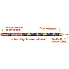 - Corpo estampado - Redondo - Grafite HB de 2,2mm - Altura: 18,5cm - Virola e borracha na cor do lápis - Marca: Leo&Leo Opções de KIT com: 02, 04, 08 ou 12 Unidades