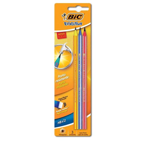 O lápis preto Evolution BIC em cores divertidas! Os Lápis Pretos BIC Evolution Pijama são extremamente seguros para crianças pois não lascam e além disso trazem conforto e maciez a sua escrita. Perfeito para a escrita diária, seja em casa, na escola, na faculdade ou no trabalho. Mais durável com grafite ultra resistente que não quebra com facilidade. Seu formato hexagonal não deixa que o lápis role pela mesa. São fabricados através de um processo único de produção, a partir de resina sintética, estes lápis especiais são fruto de anos de investigação até que este processo único de produção, quadri-extrusão, fosse aperfeiçoado, permitindo a produção numa única operação. Um excelente processo de fabricação feito em duas fábricas de tecnologia de ponta, na França e no Brasil.