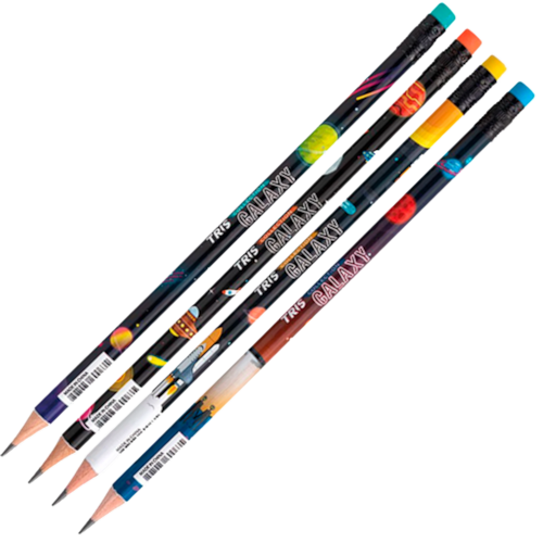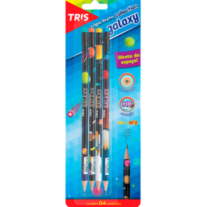 Lápis Preto HB borracha Tris Collection Galaxy 4 unidades