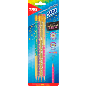Lápis Preto HB borracha Tris Collection Star 4 unidades