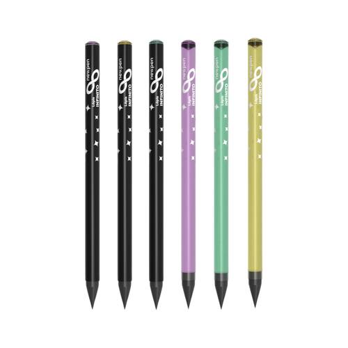 O Lápis Infinito possui uma tecnologia que consegue comprimir 100 grafites em nano partículas de grafeno, que é um material mais resistente que o grafite natural. O grafeno faz com que ele se desgaste mais lentamente que o grafite comum, o que torna a durabilidade dele igual a 100 lápis comuns.