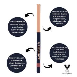 Lápiseira labial lipshape terracota a lápiseira labial lipshape possui fórmula cremosa em gel que desliza suavemente e sem esforço, proporcionando um contorno de lábios duradouro por mais de 8 horas. Com sensorial aveludado e alta concentração de pigmentos sua fórmula é ultra macia ao aplicar demorando cerca de 40 para secar, tempo ideal para esfumar se for do seu gosto. Secando ela se torna resistente à agua, atritos e possui longa duração, não borra e não escorre. Use para delinear ou para preencher todo o lábio. Tecnologia, facilidade e exclusividade para complementar ainda mais a sua rotina com bt. Formulação vegana, altamente pigmentada e com blend condicionante e nutritivo que mantém os lábios hidratados mesmo com alto poder de fixação. Embalagem em formato de lapiseira que não precisa apontar para facilitar o uso. . Benefícios - acabamento aveludado. - resistente à agua. - seca sem transferir em 40 segundos. - fixação e conforto. - longa duração. - cor intensa de fácil aplicação. - mantém os lábios hidratados com alto poder de fixação. - cor duradoura por mais de 8 horas. - blend condicionante e nutritivo. . Modo de uso gire o corpo da lapiseira expondo a mina o suficiente que você deseja usar. Aplique contornando os lábios. Uso externo. . Composição methyl trimethicone/ metil trimeticona, polyethylene/ polietileno, trimethylsiloxysilicate/ trimetilsiloxissilicato, octyldodecanol/ octildodecanol, ozokerite/ ozoquerita, acrylates/dimethicone copolymer/ copolímero de acrilatos/dimeticona, disteardimonium hectorite/ hectorita diesteardimônio, propylene carbonate/ carbonato de propileno, pentaerythrityl tetra-di-t-butyl hydroxyhydrocinnamate/ tetra-di-t-butil hidróxi-hidrocinamato de pentaeritritila. Pode conter: iron oxides ci 77491 / óxido de ferro vermelho, iron oxides ci 77492 / óxido de ferro amarelo, iron oxides ci 77499 / óxido de ferro preto, mica ci 77019 , titanium dioxide ci 77891 / dioxido de titanio, red 7 lake ci 15850 / corante vermelho 15850, yellow 5 lake ci 19140 / amarelo de tartrazina. Ci 77491/ óxido de ferro vermelho, ci 77492 / óxido de ferro amarelo, ci 77499 / óxido de ferro preto, mica/mica, ci 77891 / dioxido de titanio, ci 15850 / corante vermelho 15850, ci 19140 / amarelo de tartrazina.