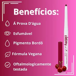 Realce o seu olhar com um toque ousado e sofisticado! A Lapiseira para Olhos Cherry da tem coloração bordô intensa que valoriza especialmente olhos castanhos claros e esverdeados, garantindo um visual marcante e moderno.