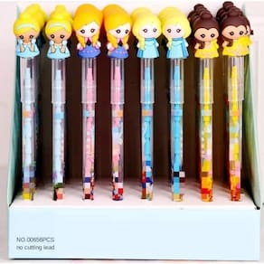 Mecanismo de troca de pontas: oferece praticidade para as crianças trocarem as pontas da lapiseira. Material em acrílico: leve, durável e seguro para o uso infantil. Personagem emborrachado: detalhes emborrachados representando personagens disney princesas, adicionando um toque lúdico. Venda unitária: cada lapiseira é vendida separadamente.