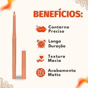 Pode ser usada para contornar os lábios antes da aplicação do batom ou para preencher completamente, criando uma base para maior fixação.