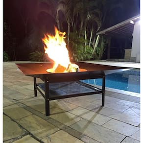 Lareira 100cm para jardim fogueira externa portatil a lenha A lazer e você apresenta a lareira para jardim portátil quadratta 100cm e 43cm altura mais alta da categoria . Fabricada em chapa grossa de aço carbono 1020. Pode ser Utilizado sobre piso cerâmico, deck de madeira e grama Base com pintura especial para altas temperaturas Bandeja galvanizada exclusiva de proteção para o piso e para pré assar alimento. Tacho com ótima profundidade na cor bruta do metal. Solda especial tig de alta resistência e acabamento - fio a fio Tacho seguro com cantos arredondados Prática, e com excelente durabilidade. Utiliza-se lenha, carvão, briquete ecológico e etc. Imagine um produto capaz de tornar as noites frias mágicas, de criar um clima sofisticado, alegre e aconchegante na presença da familiares e amigos. Use-a para encantar as crianças, bater um papo com os amigos, tocar um violão ao redor da fogueira, tomar um bom vinho, assar marshmallows, festa junina e o que imaginar. Ideal para fazer uma fogueira controlada, sem sujeira para aquecer o ambiente e alegrar os corações. observações: - lareira somente para ambientes externos como jardins, quintal ao ar livre, chácaras, pousadas, hotel fazenda, clubes, parques, etc. - quem mora em apartamento com sacada pode usar no espaço externo com carvão que não faz fumaça - devido ser fabricado em ferro, evitar o contato com água para maior durabilidade - não acompanha lenha. - cuidado e atenção total com crianças - manusear a lareira somente com luvas térmicas - a base aquece com o calor da fogueira - com o fogo a tonalidade de cor do tacho irá alterar O que acompanha: 01 tacho com chapa grossa de 2.0mm de espessura 01 base montável - pintura especial altas temperaturas 01 bandeja galvanizada exclusiva Medidas da lareira montada: Largura: 100cm Comprimento: 100cm Altura total: 43cm Peso: 21,5 kg Cor base: preto fosco Tacho: na cor bruta do metal Marca: Não Informado Ean: 7894357510007