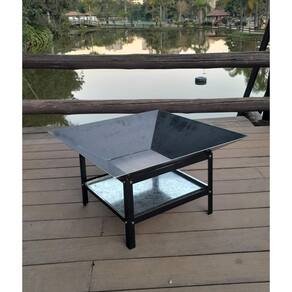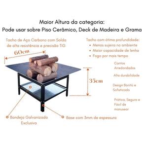 Lareira 60cm para jardim fogueira externa portatil a lenha A lazer e você apresenta a lareira para jardim portátil quadratta 60cm e 34cm altura mais alta da categoria . Fabricada em chapa grossa de aço carbono 1020. Pode ser Utilizado sobre piso cerâmico, deck de madeira e grama Base com pintura especial para altas temperaturas Bandeja galvanizada exclusiva de proteção para o piso e para pré assar alimento. Tacho com ótima profundidade na cor bruta do metal. Solda especial tig de alta resistência e acabamento - fio a fio Tacho seguro com cantos arredondados Prática, e com excelente durabilidade. Utiliza-se lenha, carvão, briquete ecológico e etc. Imagine um produto capaz de tornar as noites frias mágicas, de criar um clima sofisticado, alegre e aconchegante na presença da familiares e amigos. Use-a para encantar as crianças, bater um papo com os amigos, tocar um violão ao redor da fogueira, tomar um bom vinho, assar marshmallows e o que imaginar. Ideal para fazer uma fogueira controlada, sem sujeira para aquecer o ambiente e alegrar os corações. observações: - lareira somente para ambientes externos como jardins, quintal ao ar livre, chácaras, pousadas, hotel fazenda, clubes, parques, etc. - quem mora em apartamento com sacada pode usar no espaço externo com carvão que não faz fumaça - devido ser fabricado em ferro, evitar o contato com água para maior durabilidade - não acompanha lenha. - cuidado e atenção total com crianças - manusear a lareira somente com luvas térmicas - a base aquece com o calor da fogueira - com o fogo a tonalidade de cor do tacho irá alterar o que acompanha: 01 tacho com chapa grossa de 2.0mm de espessura 01 base montável - pintura especial altas temperaturas 01 bandeja galvanizada exclusiva dúvidas Utilize o campo de perguntas abaixo incentive as empresas nacional medidas da lareira montada: largura: 60cm Marca: Não Informado