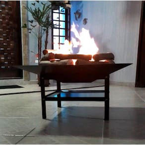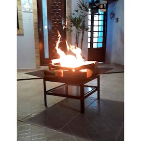 Lareira 80cm para jardim fogueira externa portatil a lenha A lazer e você apresenta a lareira para jardim portátil quadratta 80cm e 40cm altura mais alta da categoria . Fabricada em chapa grossa de aço carbono 1020. Pode ser Utilizado sobre piso cerâmico, deck de madeira e grama Base com pintura especial para altas temperaturas Bandeja galvanizada exclusiva de proteção para o piso e para pré assar alimento. Tacho com ótima profundidade na cor bruta do metal. Solda especial tig de alta resistência e acabamento - fio a fio Tacho seguro com cantos arredondados Prática, e com excelente durabilidade. Utiliza-se lenha, carvão, briquete ecológico e etc. Imagine um produto capaz de tornar as noites frias mágicas, de criar um clima sofisticado, alegre e aconchegante na presença da familiares e amigos. Use-a para encantar as crianças, bater um papo com os amigos, tocar um violão ao redor da fogueira, tomar um bom vinho, assar marshmallows e o que imaginar. Ideal para fazer uma fogueira controlada, sem sujeira para aquecer o ambiente e alegrar os corações. observações: - lareira somente para ambientes externos como jardins, quintal ao ar livre, chácaras, pousadas, hotel fazenda, clubes, parques, etc. - quem mora em apartamento com sacada pode usar no espaço externo com carvão que não faz fumaça - devido ser fabricado em ferro, evitar o contato com água para maior durabilidade - não acompanha lenha. - cuidado e atenção total com crianças - manusear a lareira somente com luvas térmicas - a base aquece com o calor da fogueira - com o fogo a tonalidade de cor do tacho irá alterar O que acompanha: 01 tacho com chapa grossa de 2.0mm de espessura 01 base montável - pintura especial altas temperaturas 01 bandeja galvanizada exclusiva Medidas da lareira montada: Largura: 80cm Comprimento: 80cm Altura total: 40cm Peso: 15 kg Cor base: preto fosco Tacho: na cor bruta do metal Marca: Não Informado