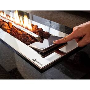 A Lareira a Gás Modelo Stile 80 cm é compatível tanto com gás encanado (GN) quanto com gás de botijão (GLP). Ela vem acompanhada de pedras vulcânicas e utiliza uma pilha AA para acendimento.