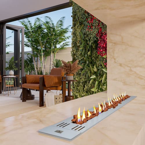 • Tamanho: 100 cm (c) x 15 cm (a) x 15 cm (l); • Queimador linear: 77 cm | 1 linha de fogo; • Área de aquecimento: 60 m² - Considerando pé direito de até 2.80m; • Consumo de gás: 480 g/h; • Peso: 12 kg; • Acabamento: cinza fosco | tinta especial para altas temperaturas; • Material: aço carbono; • Acendimento: manual com faísca elétrica (igual a um forno a gás); • Dispositivo de Segurança: Termopar – Sistema que corta o gás na ausência do fogo, semelhante a um forno a gás; • Voltagem: bivolt; • Ambiente para uso: interno - protegido do sol e intempéries; • Regulagem de chama: 5 níveis de altura; • Pedras vulcânicas inclusas para decoração; • Instalação: Uso embutido (semelhante a um cooktop); • Chaminé: Recomendado somente quando o tamanho da lareira não estiver de acordo com tamanho do ambiente. Sempre é necessário ter uma janela no mesmo ambiente para deixar um fresta aberta para renovação do ar; • Cheiro: Toda lareira a gás, a álcool ou a lenha possui chama real e por consequência um cheiro característico. A lareira a gás quando instalada corretamente, ao ser acesa irá gerar um cheiro leve que não irá incomodar; • Pressão de gás: Baixa pressão 2kg; • Tubulação de gás: Mínimo de ½” (polegada), deixar rosca macho no interior do nicho; • Tipo de gás: GN ou GLP – informar no ato da compra; Observação: O gás GLP apresenta uma chama com base azulada e pontas amareladas. Já o gás GN, isto é, o natural, apresenta uma chama completamente azul;