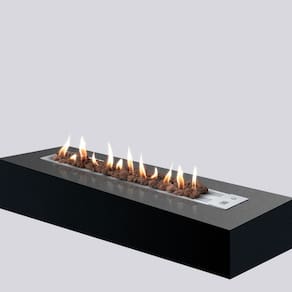 Tamanho: 150 cm (c) x 15 cm (a) x 15 cm (l); Queimador linear: 127 cm | 1 linha de fogo; Área de aquecimento: 100 m² - Considerando pé direito de até 2.80m; Consumo de gás: 720 g/h; Peso: 16 kg; Acabamento: cinza fosco | tinta especial para altas temperaturas; Material: aço carbono; Acendimento: manual com faísca elétrica (igual a um forno a gás); Dispositivo de Segurança: Termopar – Sistema que corta o gás na ausência do fogo, semelhante a um forno a gás; Segurança extra para crianças: Chave na tampa da caixa de acionamento; Voltagem: bivolt;