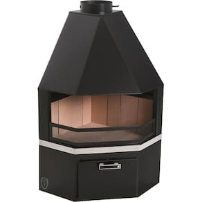 Cor: Preto | Material: Aço | Produto: Lareira | Área de Aquecimento: 40 | Alimentação: Lenha | Largura: 84 | Peso do Produto: 60 | Altura: 116 | Tipo de Lareira: De Canto
