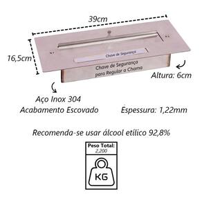 Lareira de Mesa Portátil Ecológica Inox a Álcool 39x16,5x6cm