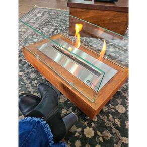 Lareira ecológica portátil em madeira Rústica, com queimador de 50cm. Destinado ao aquecimento e decoração de ambientes internos. Produzido em aço inoxidável 304 anti ferrugem de alta qualidade Abertura de saída da chama: 40 cm Abastecimento: Álcool Comum 92,8 ou Etanol Usar no máximo 1 litro em cada carga Tempo de queima é de 2h a 2h30min com 1lt álcool Área de abrangência: Aproximadamente 25 m2 Dimensões: Comprimento 60 cm / Largura 35 cm / Altura 14 cm sem vidros Vidros 56 x 17cm. Observações importantes: Utilizar álcool 92º etanol como combustível. Não utilizar álcool em gel de mercado, sob o risco de danificar o produto. O álcool 46º não pega fogo. Necessário um vão livre entre 50 e 60cm acima do queimador, permitindo que o calor se expanda. Caso exista um móvel acima do queimador, é necessário uma proteção com tijolos refratários, manta térmica ou isolante térmico eficaz acima do fogo, evitando danos ao móvel. Necessária a utilização dos vidros laterais, evitando que o fluxo de ar direcione a chama para apenas um dos lados do queimador podendo ocasionar sobrecarga e deformação do inox . Produto seguro pois tem uma Manta Térmica Cerâmica que absorve o álcool, não deixando o líquido exposto, eliminando o risco de derramar o liquido do queimador. de 1 ano contra defeitos de fabricação Embalagem: 62cm x 14cm x 37cm Peso: 14kg A embalagem contém: - 1 caixa de lareira - 2 vidros - 1 Queimador - 1 tampa abafadora - 1 Cano difusor - 1 Funil - 4 rodinhas com parafusos - Manual Marca: Não Informado