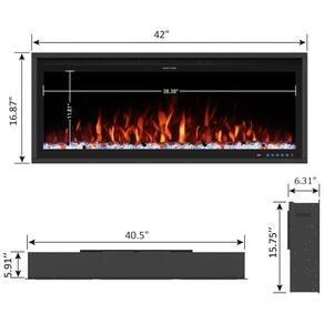 A lareira oferece chamas realistas e recursos avançados, incluindo 13 cores ajustáveis de chama, 13 cores de leito de combustível e 3 opções de luz superior, permitindo uma experiência visual personalizada com uma ampla gama de cores. O aquecedor possui um temporizador de 19 horas e proteção contra superaquecimento, operando em 120V com configurações de aquecimento de 750W e 1500W, adequadas para aquecer um espaço de até 400 pés quadrados.