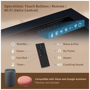 A operação é simples, podendo ser controlada por meio de um aplicativo para smartphone, por comandos de voz com Alexa ou Google, ou ainda por um controle remoto. O produto oferece 9 opções de cores para as chamas e para o leito de combustível, além de ajuste no brilho e no volume dos efeitos sonoros de estalo.