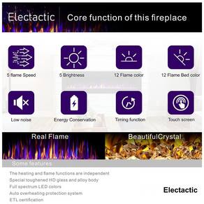 Chama realista Contratamos uma excelente equipe de design. Temos revisto o design dos nossos produtos nos últimos anos. Luzes LED de alta intensidade com display grande permitem que a chama queime alto o suficiente, as chamas emergem lentamente da fonte e depois são puxadas para o topo da lareira, onde piscam no calor da parte superior da lareira. Os clientes podem alterar a cor da tora e da chama de acordo com suas próprias preferências e há um total de 12 correspondências. Modos de controle flexíveis Remoto e tela sensível ao toque tornam mais conveniente controlar todas as funções da lareira elétrica, interruptor de alimentação, controle do temporizador de 1 a 8 horas, interruptor independente de aquecimento e chama, cor e velocidade da chama ajustáveis, função de modo de suspensão. O design de switch físico independente superior passou pela certificação de segurança ETL. Segurança e economia de energia Nossa lareira tem 750W e 1500W, dois modos podem ser ajustados de acordo para fins de aquecimento e economia de energia. O aquecimento da zona suplementar é de até 37 m2. Temos Certificado ETL. Ele também possui segurança de eliminação automática de calor para evitar o superaquecimento. O calor é bom para manter a umidade natural do ar sem deixar o ambiente muito seco