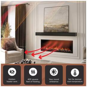 Além disso, a lareira possui saídas de ar de aquecimento ocultas, criando uma estrutura aerodinâmica sem grades ou saídas de ar visíveis, mantendo a estética limpa e elegante do produto.