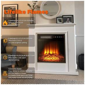 Com múltiplas funções, o controle remoto e a tela sensível ao toque facilitam a operação. É possível selecionar entre opções de aquecimento de 750 W a 1500 W, adequando-se a diferentes ambientes e climas, e ajustar o temporizador de 1 a 8 horas conforme necessário. A lareira pode aquecer uma área de até 400 pés quadrados, sem ressecar o ar, tornando-a uma solução prática e eficiente para seu espaço.