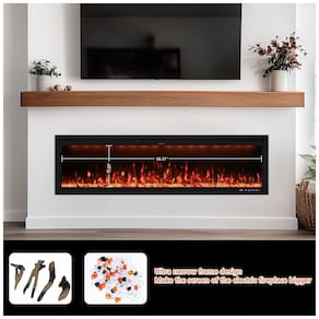 Desfrute do calor e da beleza da Lareira Elétrica Valuxhome de 60 polegadas. Com 13 cores de chamas, 13 cores de brasas e 3 cores de luz no topo, crie até 507 combinações de cores. Seu design ultra estreito oferece maior visão da chama em uma tela ampliada, garantindo um visual impressionante em sua casa. Com dois modos de aquecimento, atinge facilmente até 37m². Controle a chama, a cor da luz e a função de aquecimento separadamente. Além disso, possui proteção contra superaquecimento e timer de 19 horas para sua segurança. Acesse o controle por aplicativo, tela sensível ao toque ou controle remoto para uma experiência moderna e prática.