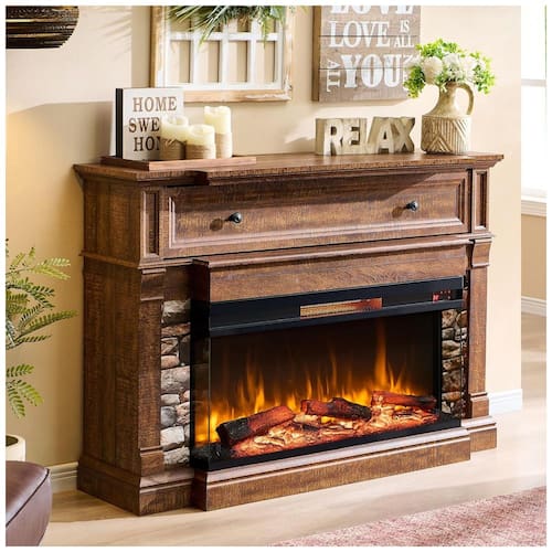 Lareira elétrica com vidro de 3 lados! Esta lareira possui uma tela de vidro em 3 lados, proporcionando uma visão desobstruída da lareira elétrica . Troncos realistas e tecnologia de chamas em 3D oferecem efeitos de chamas realistas. Escolha entre 3 cores de chamas clássicas - vermelho, laranja e azul - e 5 níveis de brilho da chama, com temperaturas ajustáveis de 18°C a 28°C para até 37 metros quadrados. Não é necessário calor para desfrutar do efeito de chama. Disponível o ano todo! Suporte de TV com Lareira de Estilo Fazenda: O topo do suporte desta lareira imita o grão de carvalho naturalmente envelhecido, e o armário é finalizado com uma elegante camada de pedra para detalhes sofisticados e clássicos. A larga e espessa prateleira pode suportar até 54 quilos, perfeita para exibir aparelhos, e a base de 10 centímetros de espessura adiciona estabilidade ao armário para segurança! Crie facilmente uma sala de estar rústica, charmosa e aconchegante. Lareira Elétrica Multifuncional: A lareira elétrica independente vem com tela sensível ao toque e controle remoto para uso a até 6 metros de distância, facilitando o uso por idosos. O timer de 19 horas reduz o consumo de energia para uma noite de sono aconchegante. Com uma prateleira superior semiaberta para armazenar aparelhos como DVDs ou consoles de jogos, e furos na parte de trás para cabos, diga adeus às lareiras tradicionais. Lareira Elétrica Inserção de Qualidade: A lareira independente OKD é segura, conveniente, silenciosa e possui certificação da CSA e UL, com um dispositivo de desligamento de segurança por superaquecimento! Este aquecedor é para uso em 110 volts. Nossa missão é criar um lar melhor e mais seguro. Compre com Confiança: Nossas instruções de montagem são concisas e todas as peças são rotuladas para facilitar a leitura e manuseio. As lareiras são embaladas individualmente e podem ser facilmente encaixadas no local. Os produtos serão enviados em uma caixa resistente cercada por espuma grossa e painéis de proteção de madeira. Os dois pacotes são enviados separadamente e podem não chegar ao mesmo tempo.