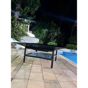 Largura: 100cm Comprimento: 100cm Altura total: 42cm Peso: 20,5 kg Cor Base: Preto Fosco Tacho: Na cor bruta do metal Marca: Lazer E Você Ean: 7894357552045