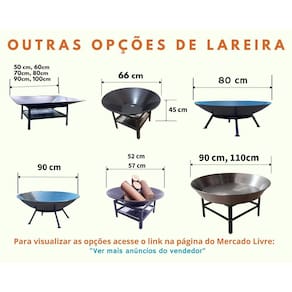 - Fotos meramente ilustrativas, atentar-se para dimensões informadas. - Devido ser fabricado em ferro, evitar o contato com água.... - Não acompanha lenha. - Cuidado e atenção total com crianças - Manusear a lareira somente com luvas térmica - A base aquece com o calor da fogueira - Com o fogo a tonalidade de cor do tacho irá alterar