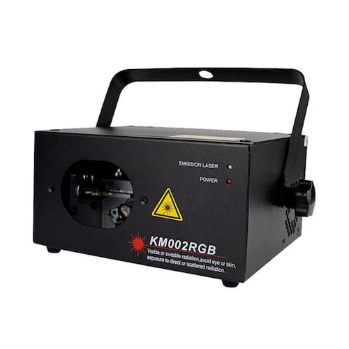 O KM002RGB é um laser full color de 180mW que combina três cores primárias (vermelho, verde e azul) para criar uma variedade de efeitos visuais impressionantes. Equipado com um módulo scanner XY, ele produz mais de 30 efeitos diferentes, incluindo: Traçado de padrões em formato ILDA, Leques de luz (abanicos de ases), Planos rotativos, Efeito túnel, E muito mais!
