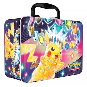 Deluxe Esta maleta de metal robusta está cheia de produtos de Pokémon prontos para alegrar o seu dia!