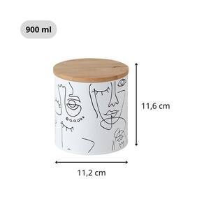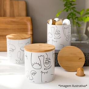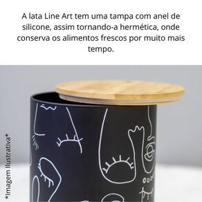 Lata porta condimento line art 900 ml yoi A lata line art além de organizar a sua cozinha/ armário/ bancada, deixando tudo sempre à mão, facilitando o seu dia a dia, ela ainda compõe na decoração da sua cozinha. A lata é produzida em aço carbono, além de ser resistente, ela não deixa cheiro e nem gosto, com um lindo design delicado traçado a mão livre. A tampa possui um anel de silicone, onde torna um fechamento hermético, assim conservando os alimentos frescos por mais tempo. Dimensão: diâm x alt : 11,2 x 11,6 cm. Capacidade: 900 ml. Material: aço carbono. Cor: branco. : 3 meses.
