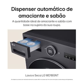 Lava e Seca LG WD18GNTS6 18kg/10kg AI DD Wi-Fi TurboWash 360° Vapor Black Inox. Alta capacidade, inteligência artificial e design minimalista em um só produto!A