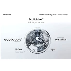 Marca: Samsung Ref.: WD11A4453BW/AZ Voltagem: 127V Cor: Branca Lavagem: 11 kg Secagem: 7 kg Consumo de Água (Lavagem): 53,8 LTS Display: LED Motor: Digital Cesto: Diamond Drum Porta: Tint Door Classificação Energética: A Tecnologia Ecobubble Potência: 1100W Velocidade de Centrifugação: 1400 RPM Algodão Lavagem Rápida Lavagem Higienização Função Vapor Enxaguar+Centrifugar Ciclo Rápido: 15 minutos Número de ciclos: 12 Tecidos Sintéticos Lavagem a Seco