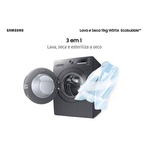 Roupas sempre bem cuidadas com a lavadora que lava, seca e esteriliza a seco. Com o ciclo de lavagem a seco, você elimina odores indesejáveis e até 99,9% das bactérias e alérgenos que causam problemas respiratórios, sem usar água ou sabão. Ideal para proteger sua saúde e a da sua família. A WD11A lava e centrifuga as roupas em 15min no ciclo rápido destinado a pequenas cargas, com sujeira leve. Ela ainda possui um ciclo de lavagem e secagem de 59min para garantir mais praticidade e tempo.