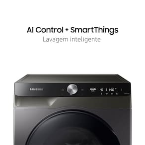 Lava e Seca Samsung WD13T Smart Inox com capacidade de 13kg para lavar e 7kg para secar. Possui Lavagem inteligente com AI Control e conectividade SmartThings, tecnologia QuickDrive™ e Super Speed para lavagem rápida.Centrifugação