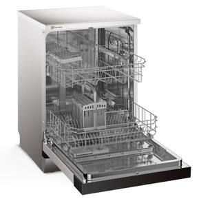 PisoA lava-louças Electrolux LS14E oferece alta capacidade com eficiência e praticidade: comporta até 14 serviços, conta com o poderoso programa Lava & Seca 50 min, o ciclo Eco que proporciona economia de 91% de água e 54% de energia, além da função Higienizar Louça 70C, capaz de eliminar até 99,99% das bactérias. O painel digital exibe o tempo restante, enquanto os diversos programas inteligentes garantem limpeza eficaz com estilo moderno em inox.